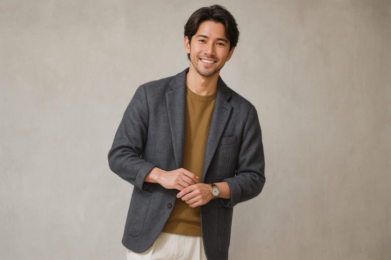 まず、ジャケットは季節に応じた素材選びがポイントです。春夏ならリネンや軽いコットン、秋冬ならウール混素材など、季節感を意識するだけで「センスがある」と感じてもらいやすくなります。